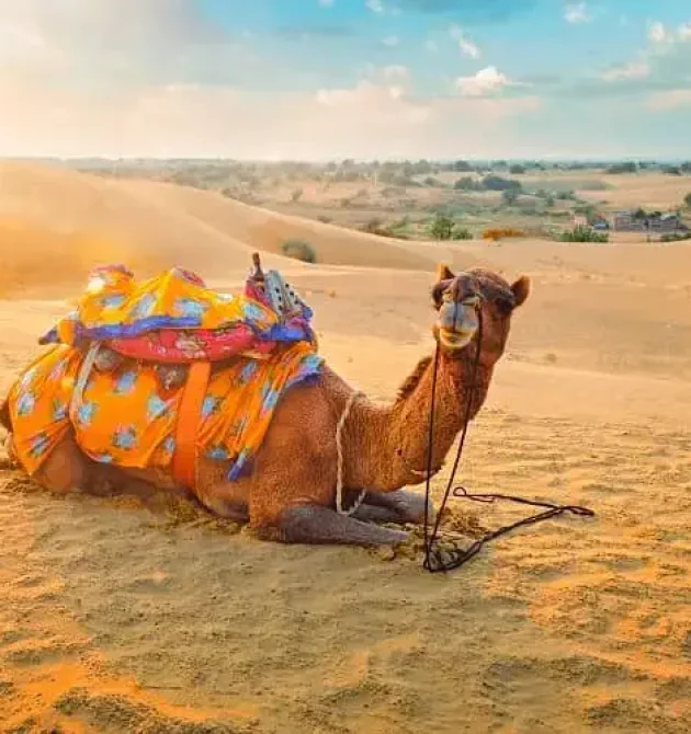 The camel safari is the highlight of any Jaisalmer camp experience. At Sunrise Resort, guests can enjoy a memorable ride on majestic camels across the golden dunes, guided by experienced local camel handlers.